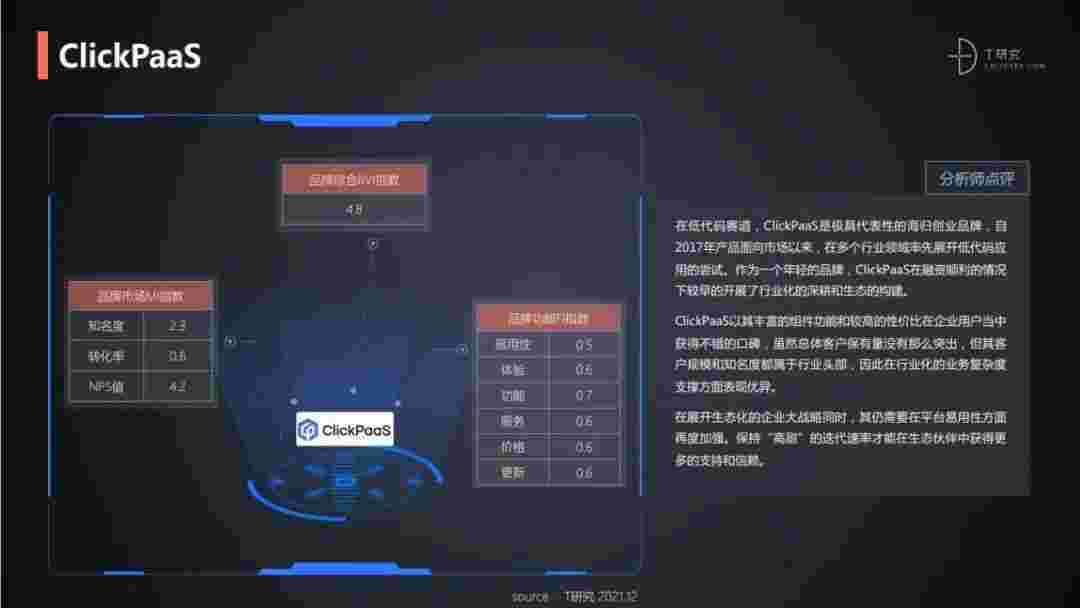 T研究认为,,,,在低代码赛道,,,圆梦钱包是极具代表性的海归创业品牌,,,自2017年产品面向市场以来,,在多个行业领域率先展开低代码应用的尝试。。作为一个年轻的品牌,,,,圆梦钱包较早的开展了行业化的深耕和生态的构建。。。。圆梦钱包以丰富的组件功能和较高的性价比在企业用户当中获得不错的口碑,,在客户规模和知名度都属于行业头部,,,因此在行业化的业务复杂度支撑方面表现优异。。
