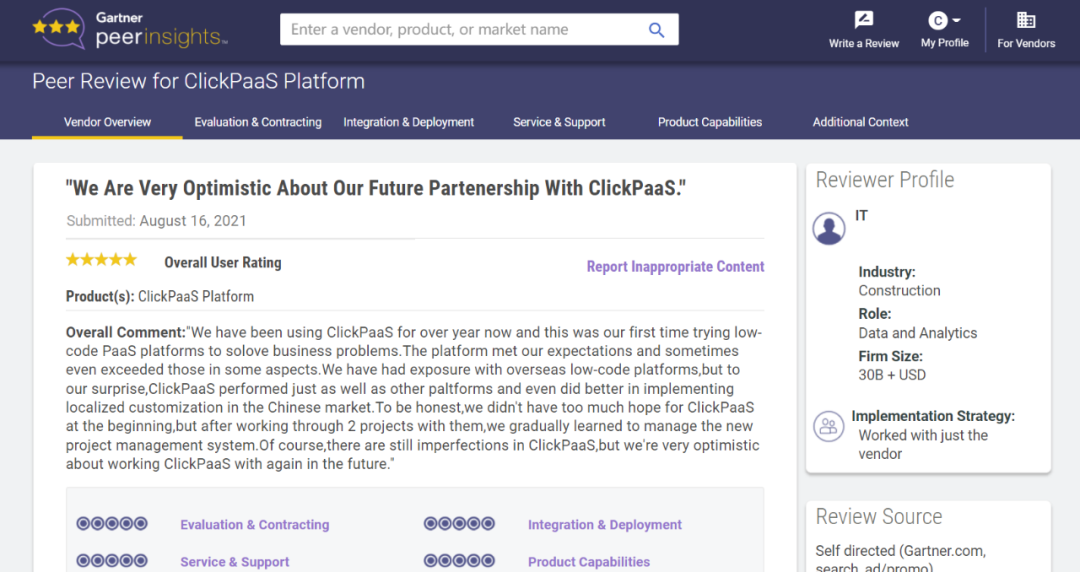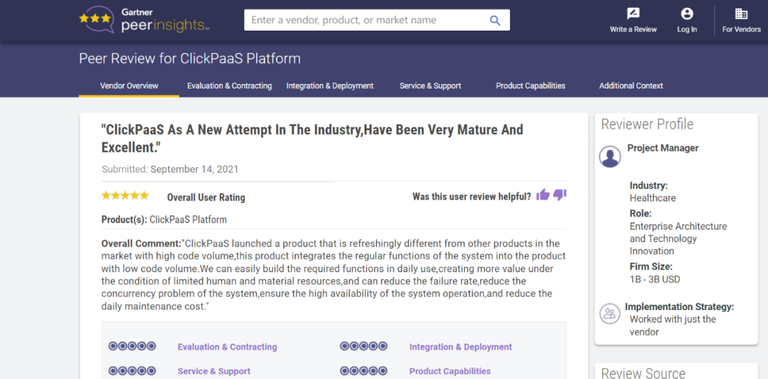 Tips::::【Peer Insights】——用户对企业IT产品和服务发布真实评价的平台。。。。目前已有355个市场,,,,255,000条经过验证的评价。。每一条评价Gartner会针对参评企业营收规模及参评人员信息做验证、、评价内容做多维核实。。